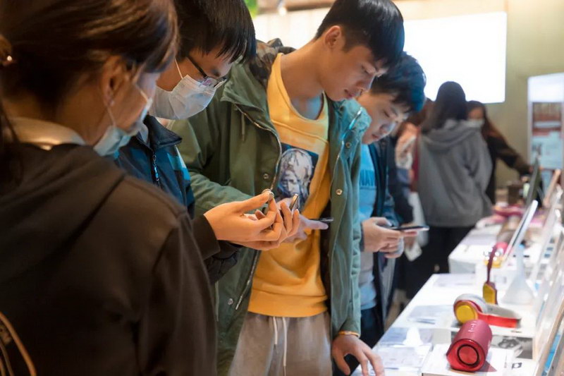 本次實踐活動從Cleer展廳開始,展廳內科技和顏值并存的耳機讓學生打開新的視界,紛紛體驗店內耳機。