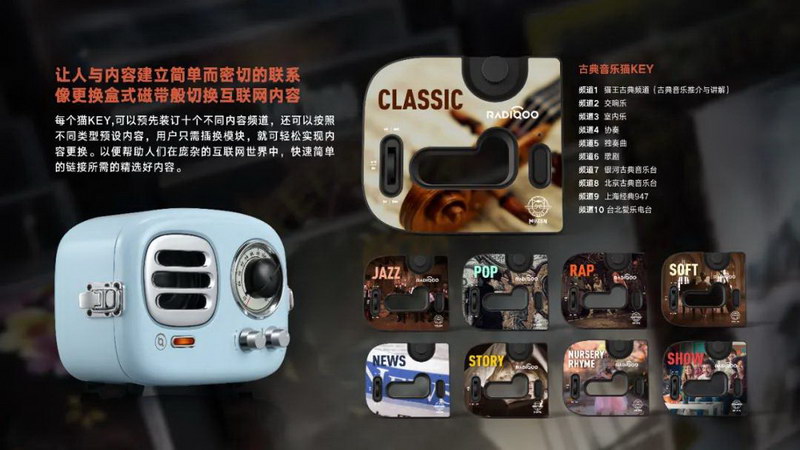 與“5G/4G超級收音機(jī)”同時(shí)獲獎(jiǎng)的,還有貓王收音機(jī)基于科普教育開發(fā)的“RADIOOO FUN”,通過積木式拼裝的方式,開創(chuàng)一個(gè)5G/4G高科技娛樂化、普及化、商業(yè)化產(chǎn)品。