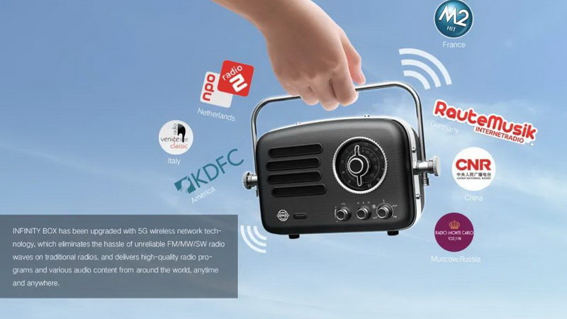 該產(chǎn)品可一鍵切換Wi-Fi網(wǎng)絡(luò)與5G/4G網(wǎng)絡(luò)的連接,同時(shí)根據(jù)網(wǎng)絡(luò)情況兼容3G自適應(yīng)匹配音頻質(zhì)量,擺脫了傳統(tǒng)收音機(jī)無線電波不足和傳統(tǒng)藍(lán)牙音箱連接距離過短的束縛,實(shí)現(xiàn)脫離手機(jī)獨(dú)立工作,打破地域限制,隨時(shí)隨地收聽到全球范圍內(nèi)的優(yōu)秀電臺節(jié)目及音頻內(nèi)容。
