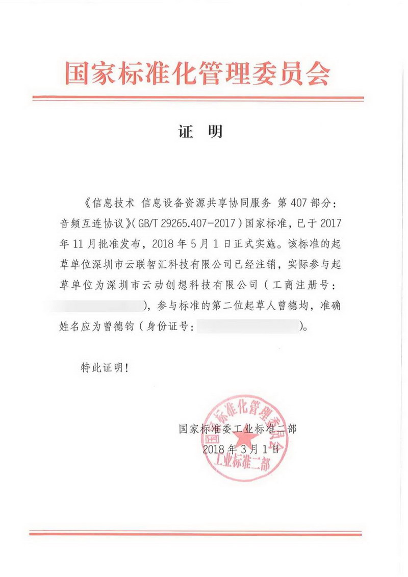 貓王是一個(gè)有夢想的品牌,讓每個(gè)人聽見獨(dú)有的樂趣,成為獨(dú)樹一幟的世界級音響品牌,需要有自己的核心技術(shù)。2012年在品牌成立之前,貓王團(tuán)隊(duì)申請了發(fā)明專利,2014年把專利變成聯(lián)盟標(biāo)準(zhǔn),2017年將聯(lián)盟標(biāo)準(zhǔn)升級為國家標(biāo)準(zhǔn)(智能音響中的通訊協(xié)議類似與手機(jī)中5G通訊協(xié)議),這個(gè)標(biāo)準(zhǔn)是中國智能音響產(chǎn)業(yè)里第一個(gè)技術(shù)標(biāo)準(zhǔn)(標(biāo)準(zhǔn)編號GB/T29265.407—2017)。