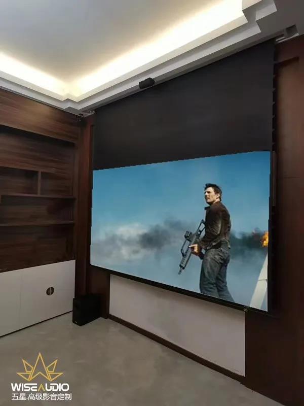 張先生是一位電影發燒友,想在挑高客廳做一套影音系統,客廳采用EPSON最新4K機型CH-TW8400,配合JK專門定制加長133寸電動拉繩幕。音響采用德國 CANTON 5.1衛星音箱套裝,讓觀影者享受到聲音于畫面的完美感受,超高性價比,營造客廳極致視聽盛宴!