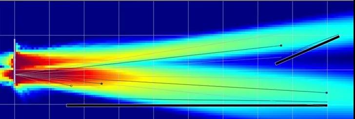 為了與周圍的裝修協調一致,揚聲器必須要安裝在較高的位置。在本方案中,我們把聲學中心通過軟件設置在揚聲器底部的單元上,盡量避免聲能覆蓋到天花,造成有害反射,為大廳提供了優秀的語言清晰度。這是根據嚴謹的聲學分析,聲源設置在人耳稍高的地方,聲軸線指向廳堂的最后端,聲音的-6dB垂直覆蓋線不覆蓋到天花,這時的聲場效果最佳,清晰度最高。