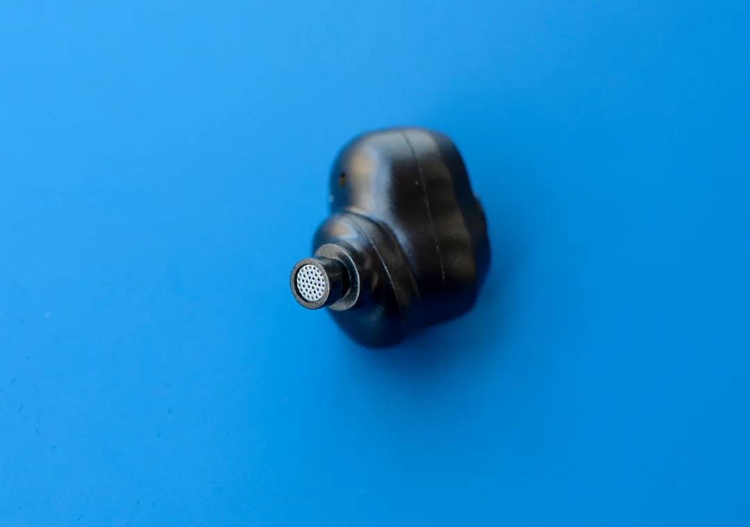 ▲▲導管長度適中,這樣設計很好的減輕了耳塞腔體對于耳道的壓迫,耳塞腔體的倒角光滑圓潤,帶來了不錯的佩戴舒適感。去掉耳塞套可以看到導管的防塵網孔距比較密,可以很好的隔絕灰塵。