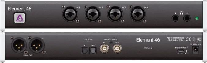 Element系列共有3個型號:Element24,Element 46,Element 88。其配備行業頂級的AD轉換器,Advanced Stepped Gain Architecture(高級步進增益結構技術)的模擬話放可以達到75dB增益,準確的主時鐘,低至1.41ms的雷電接口延遲。