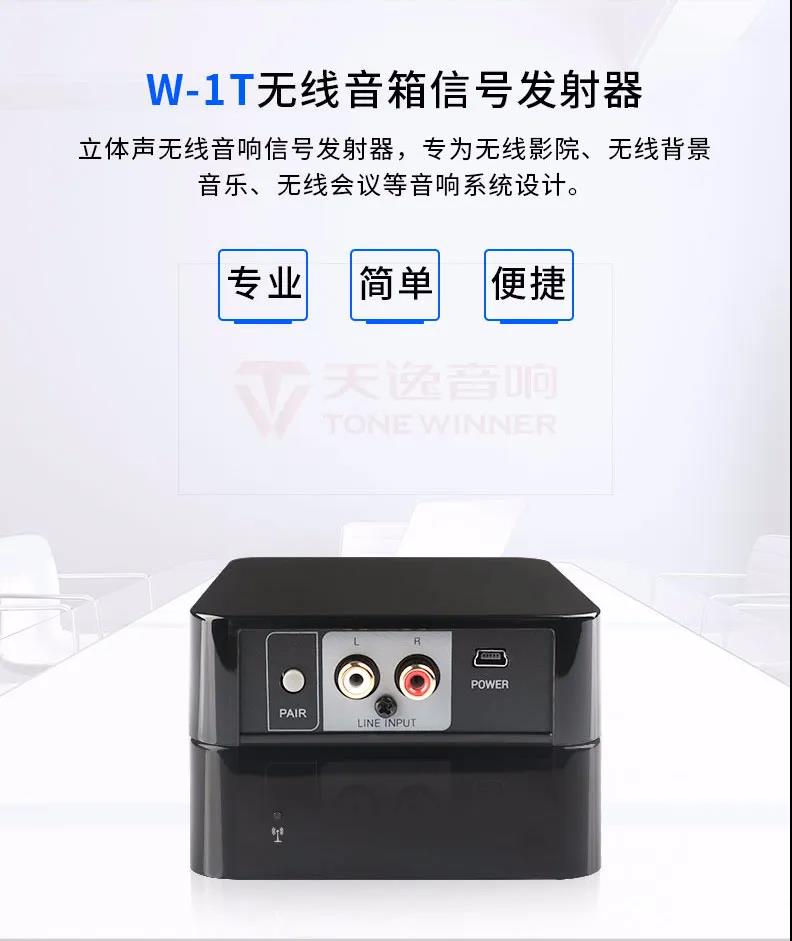 天逸新推出的神器——W-1T/R高保真無線收發(fā)器,正是為廣大客廳黨解決諸如接線、布線等問題!它集信號發(fā)射、信號接收和功率放大于一體,專為無線影院、無線背景音樂、無線會議等音響系統(tǒng)設計,完美解決客廳、會議室等布線問題。它超長的無障礙接收距離,打破了空間對信號的限制;體積輕巧,存放便捷,即插即用,使用極為簡單!用無線的歡樂,擺脫有線的煩惱!