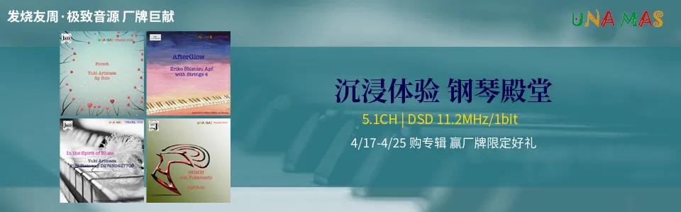 UNAMAS:以環繞聲音頻制作著稱,多次榮獲日本專業錄音獎。本次帶來的鋼琴音樂專輯,既有5.1聲道全新發布,又有11.2MHz DSD還原絕妙聲音細節。