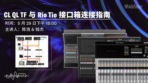 本期直播將由雅馬哈專業(yè)音響技術(shù)負責人陳浩先生為大家講解 CL QL TF 系列數(shù)字調(diào)音臺與 Rio Tio 音頻接口箱連接設(shè)置技巧。直播最后則由錢杰工程師為大家答疑解惑。