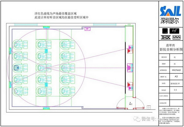基于目前電影市場100%的進口電影是杜比全景聲錄制,80%國產片是杜比全景聲錄制。同時杜比全景聲基于杜比定向邏輯將聲音重新還原,在其電影音效的感受上達到一個全新的體驗層面,所以,配置方案將采用杜比全景聲布局。