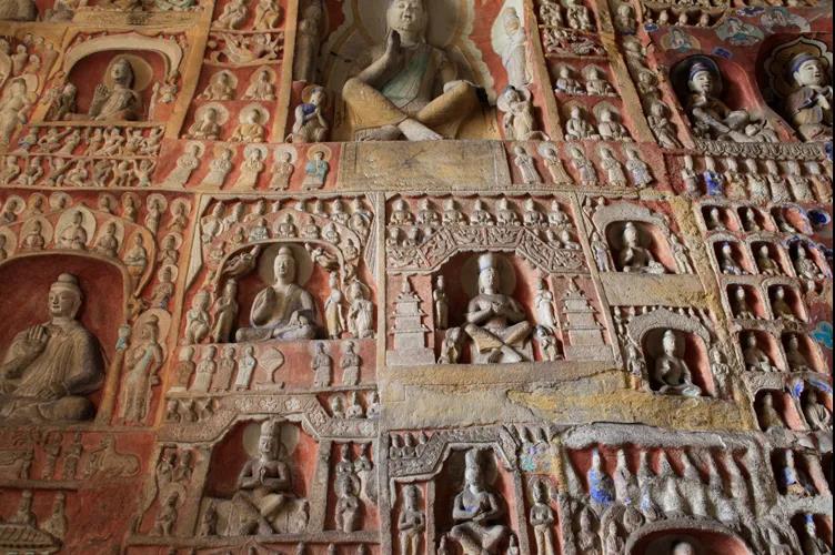 現存主要洞窟45個,附屬洞窟209個,雕刻面積達18000余平方米。造像最高為17米,最小為2厘米,佛龕約計1100多個,大小造像59000余尊。