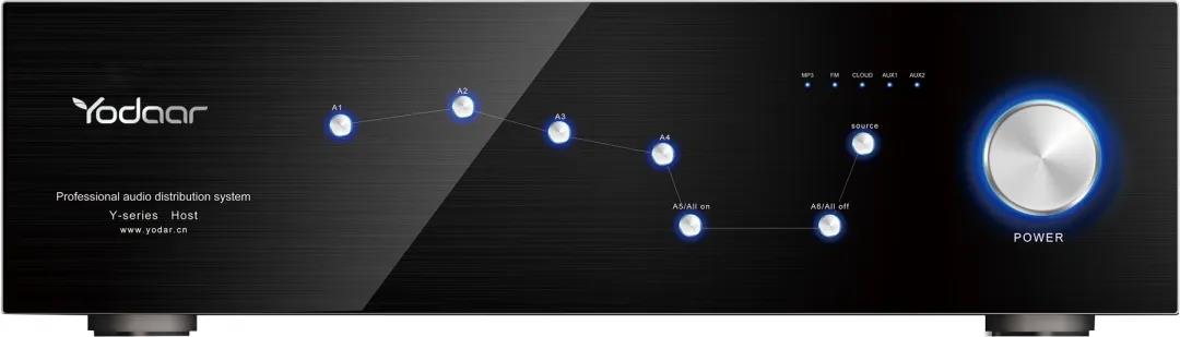 比如,別墅和180㎡以上的大平層,選擇中央機肯定比選一體機合適,因為中央機功率更大、音樂分區更多,適合房間多、面積大的高檔住宅。比如悠達的Y系中央機,可以同時滿足4-8個房間的音樂需求,并且支持級聯,解決更多通路需求。而像功放面板集成式的一體機,因為功率相對小,更適合小平層及中小戶型。所以,用戶在安裝之前,一定要先搞清楚自己的戶型適合哪種產品,不要盲目決定。