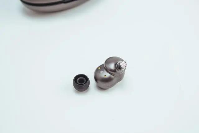 耳機本體是一個類似三層的結構,入耳部分---中間層---露出部分。可以看出形狀很不規整,應該是為了更貼合耳朵。體積應該算比較大的,不過重量還是很輕的,官方數據單耳是5.9克。