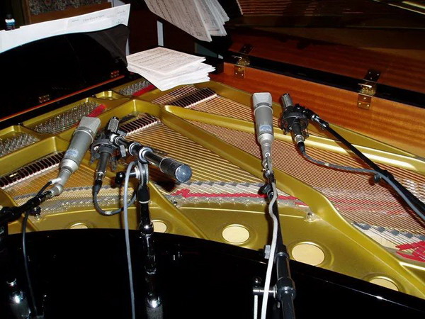 鋼琴的錄制方式多種多樣,不同的拾音方式產生的效果也有明顯的不同。古典音樂的錄音通常得益于一定程度的室內氛圍,通過把麥克風放在鋼琴的外面或與鋼琴保持一定的距離來實現。流行和搖滾唱片通常要求鋼琴的音板發出更近距離的拾音,以便做出更緊密、更直接的反應。去掉鋼琴蓋子可以在反射情況下對音板進行拾音,而在完全開蓋的情況下,在蓋子外面放上麥克風可以讓錄音更豐滿、更自然。鋼琴是一種非常復雜的樂器,記錄它的可能性是無限的!