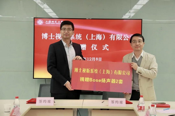 12月8日,博士視聽(tīng)系統(tǒng)有限公司捐贈(zèng)儀式在香樟苑401舉行。校黨委副書記、副校長(zhǎng)葛衛(wèi)華、Bose 專業(yè)系統(tǒng)大中華區(qū)總經(jīng)理封志剛、學(xué)工部、教育發(fā)展基金會(huì)、團(tuán)委及Bose公司相關(guān)人員參加捐贈(zèng)儀式。儀式由校教育發(fā)展基金會(huì)秘書長(zhǎng)陳曉虹主持。