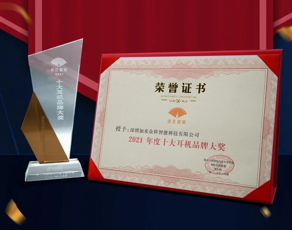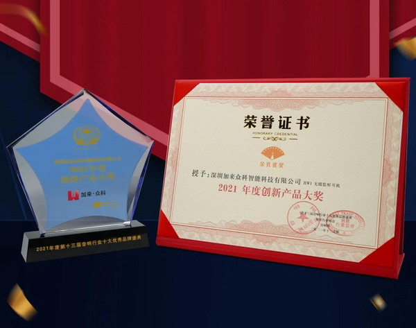 作為深耕音頻行業的加來眾科受邀參加了本屆盛會,加來眾科——一個追求專業品質、科技創新的品牌,獲得眾多關注與青睞,在本次金孔雀評選活動中連獲四獎,即“2021年度新銳品牌大獎”、“2021年度創新產品大獎”、“2021年度十大直播設備品牌大獎”、“2021年度十大耳機品牌大獎”。