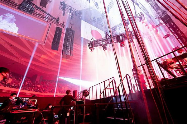 在本次演出中,整個場館部署了108只Adamson E系列和S系列揚聲器,聲場覆蓋呈270°分布。川上將32只E15作為主PA,搭配12只E119超低頻揚聲器吊掛安裝,12只E15作為側場補聲;16只E12幫助完成了270°的覆蓋角度;12只地面堆疊的E219超低頻揚聲器,補充更多低頻下潛。兩組4只S10+S119地面安裝在兩側作為舞臺補聲,以及用于后場延時的每側3只S10。S10和S10p則作為臺唇補聲。該系統由Adamson在日本的第一個也是最大的合作伙伴Sunphonix以及Blue Project提供。