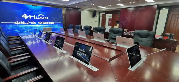 陜西中太能源投資集團選用HUAIN華音集現代會議技術、音視頻技術、軟件技術于一體的無紙化會議系統解決方案,每套無紙化會議系統帶會議話筒,帶電子桌牌,與中央控制系統、音頻處理系統和擴聲系統等搭配使用,會議效果非常好。