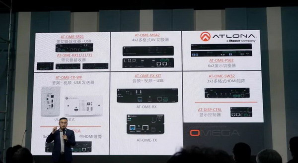 首先,由Atlona大中華區(qū)銷售總監(jiān)陳加琪上臺(tái)致辭,他介紹了做為Panduit旗下的Atlona的發(fā)展歷史,陳總表示:“作為從下而上的音視頻集成方案的領(lǐng)導(dǎo)者,Atlona有超200多種產(chǎn)品服務(wù)于企業(yè)、文娛、教育和醫(yī)療等各種垂直市場的終端用戶,Atlona一直屹立在尖端影音技術(shù)開發(fā)的最前沿,充分發(fā)揮影音與網(wǎng)絡(luò)基礎(chǔ)設(shè)施相融合的潛力。”