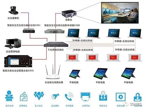 ● 智能交互式無紙化會議系統是根據移動互聯的無紙化會議交互系統軟件、當代通信技術、視頻產品、軟件開發,根據文檔的電子器件互換完成會議的電子化,具有會議簽到、文檔派發、上傳文件、數據同步演試、投票表決等功能。