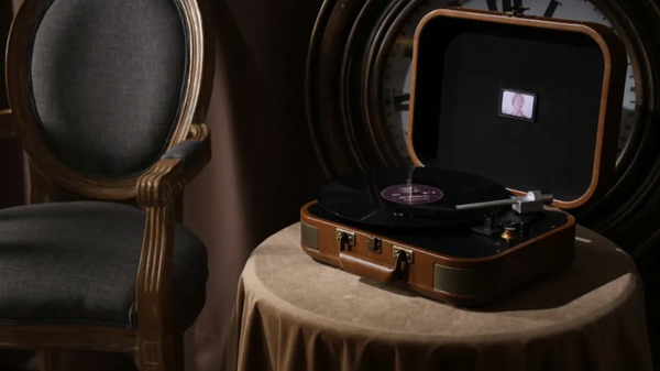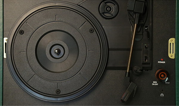 它是一臺入門級提箱式唱機,濃郁的色調搭配黃銅色鉚釘、荷葉等金屬件,極具復古感。