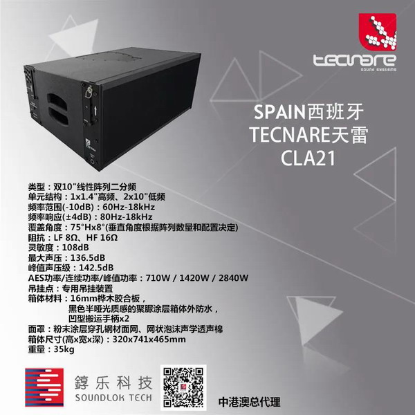 TECNARE天雷CLA系列是TECNARE最強大產品線性陣列系列揚聲器,結合了TECNARE獨特的先進線性陣列組合技術。是專業重放音樂效果的代名詞!是演唱會、大型劇場等專業場所不二的選擇!