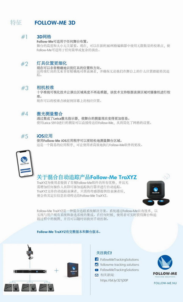 荷蘭Follow-Me 3D Six遠程跟蹤系統作為官方技術團隊Ampco Flashlight的一部分被用來讓歐歌賽表演者在舞臺上不論何處都能保持聚光在他們身上。為了包容每個演唱者的無數燈具,不論品牌型號都可以被Follow-Me控制。在現場,一共有64臺燈具使用Follow-Me 3D控制,通過PSN(PosiStageNet)來獲得燈具的位置數據實現動作控制,Follow-Me可以了解三維空間中的燈具位置和方向,并使用此數據將任何選定的燈具對光到表演者上。這種獨特的跟蹤能力能夠允許操作員們可以使用POE連接的鼠標控制臺對多達6個表演者實現跟蹤。