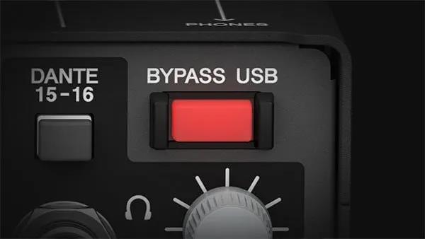 RUio16-D 的前面板設有一個開關,用于繞過來自插件端的音頻傳輸。如果您的計算機出現問題,通過使用該功能,可以防止可能導致整個系統聲音停止的任何問題。