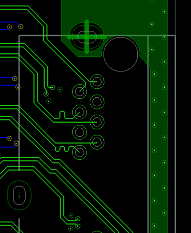 模組端采用電阻、電容、電感、磁珠等元件組成RC濾波電路來抑制電磁場方面干擾大小,濾除級數較高的高頻諧波以降低時鐘信號的上升和下降時間。此外,PCB采用4層板,有單獨的GND屏蔽層,通過PCB LAYOUT技巧,遵循3W原則,兩個走線中心間距至少大于3倍的線寬,保持70%的線間電場不互相干擾,高頻信號線進行包地處理,少打孔、少轉折、少換層的原則,并且PCB板做金屬化包邊工藝,將整個板邊用金屬包圍起來,從而使微波信號無法從PCB板邊輻射出去,以達到降低輻射的效果。