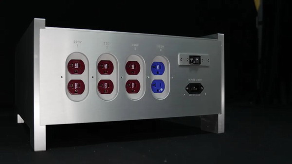 開關連接著兩個電感、線圈式導線,然后連接至隔離牛通過編織的線輸出到插座,插座由上下兩件厚鋁架緊緊固定使得插座與鋁板震動頻率一致。隔離牛外部由一層0.5毫米的銅片包圍,可以杜絕周圍的繼電器、輸出線、變壓器等帶來的干擾,將隔離牛與外界屏蔽,提升聲音背景寧靜度,實現更佳的聲音效果。變壓器內部還設置了補償電容以及防雷裝置。隔離牛倒調式安裝于變壓器內部,可以顯著減小其振幅。