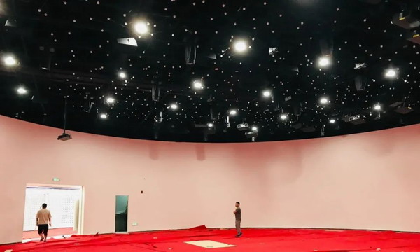 在螞蟻A空間中設有一個圓形環幕影廳,佳聯公司為其設計了一套DTS:X臨境聲系統。硬件設備上在影廳中采用了Q-SYS Core 110f作為處理器,并搭配了10臺CX-Q網絡功放,以及45只QSC電影系列專業揚聲器使用。