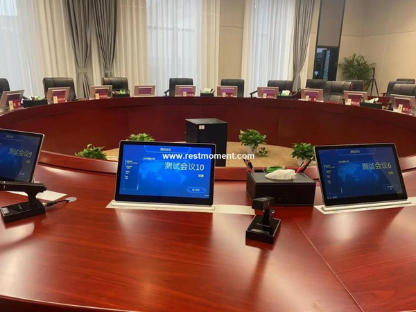 雷蒙電子無紙化會議系統RX-D6102系列,包括:15.6寸雙屏升降一體終端RX-D6102,視頻管理編解碼器RX-B6100,會議文件管理服務器RX-M6100,數字會議終端RX-E6100。超薄屏幕,升降器、系統主機采用三體分離式設計,集成度高,抗干擾能力強。運輸、安裝、調試、后期維護方便快捷。系統分離升級,保證資源利用最大化。無紙化會議系統改變了傳統會議的表現形式,只需輕按觸摸屏,即可解決會前,會中,會后的所有銜接,運用和保存。
