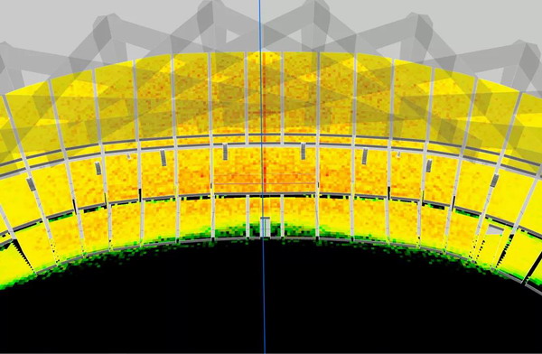 首先借助Soundvision建模預(yù)測軟件,仔細(xì)構(gòu)建了國家體育場的細(xì)節(jié)建模,同時采用音箱的官方數(shù)據(jù)對每一組音箱進(jìn)行建模。并檢查聽音覆蓋面等信息,確保聲場可以實(shí)現(xiàn)均勻覆蓋。