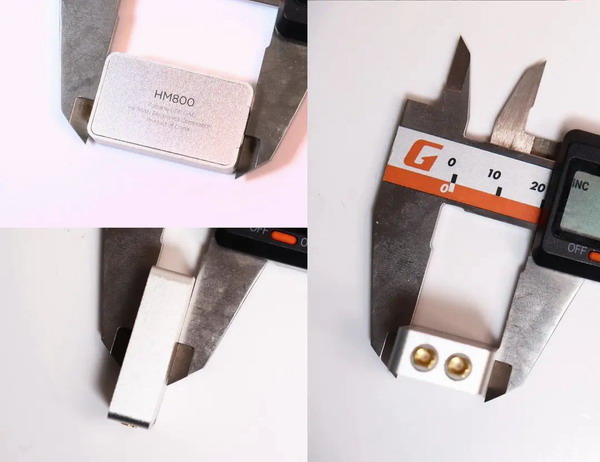 既然看到主體了,官方宣傳它是最輕巧的解碼耳放設備,那么具體有多小呢?下面我做了一個實際測量可以看到長為33.43mm,寬為19.49mm,厚度為8.95mm,這樣的體積基本上就是一個橡皮擦的體積,你可以將它放到自己的褲兜里或者小包里,外出隨時攜帶非常方便。