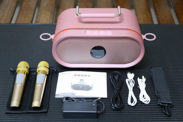 麥克風(fēng)(2個(gè)):人體力學(xué)鋁合金造型,2.4G全自動(dòng)調(diào)頻無線模塊,高保真、防風(fēng)燥、抗干擾、防嘯叫,10米無損傳輸,多種音效混響。簡(jiǎn)單設(shè)置,開機(jī)即用,省卻繁瑣的調(diào)頻動(dòng)作,想唱就唱。全數(shù)字聲學(xué)解析技術(shù)、音效混響和音質(zhì)高保真將你的聲音以你最理想的方式展現(xiàn)出來。同時(shí)15V 4A電源適配器、產(chǎn)品使用說明書、USB數(shù)據(jù)線、3.5MM音頻連接線、還很貼心的準(zhǔn)備了一根背帶。