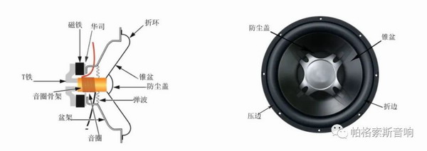 防塵蓋(防止異物落在磁隙中影響音圈的運動);