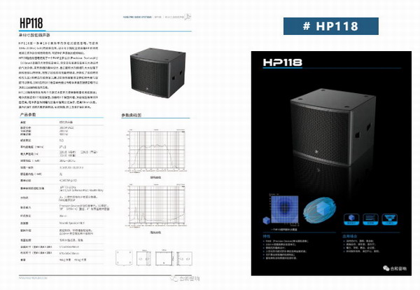 超低配置單十八寸超低揚聲器HP-118和雙十八寸超低揚聲器HP-218。采用FANE全新設計Precision Devices 4寸音圈的大功率低音單元,倒相的箱體設計增加了超低頻能量的輸出,并降低了低頻的非線性失真;高瞬態的低頻單元通過箱體倒向管調諧使低頻力度與厚度可以兼得。低音聽感富有彈性且有厚度。