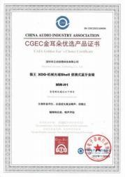 金耳朵選擇 (CGEC) 是由中國電子音響協會推出的一款品質標識,是目前我國電聲行業首 個針對音頻產品綜合客觀測試+主觀評價的權威性評測, 同時也是相關企業提升產品音質的參考 依據 。