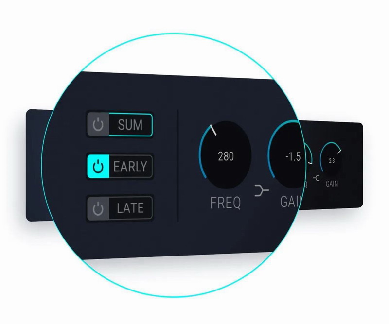 此外,EXOVERB 還提供三個獨立均衡器,用于調整早期反射音、衰減和求和訊號。每一個三頻段均衡器均包括低擱架濾波器、參量濾波器和高擱架濾波器,以在混音時獲得最佳混響音效。