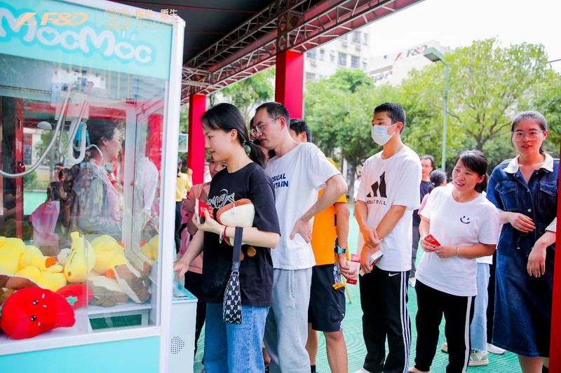 “美了帥了開心了”潮玩游樂區設置了點球大戰、眼疾手快、抓娃娃機、穿越火線等各種小游戲,咱們可是直接把游戲機搬來了現場!除此之外,還有傳統的運動小游戲,例如海底撈月、乾坤戰鼓、趣味乒乓等。玩游戲還可獲得美食優惠券或30周年限量紀念周邊!現場氣氛活躍,熱情高漲!