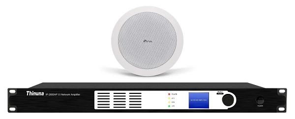 旋轉式的安裝耳可以準確定位并且鎖定天花板厚度,可以快速方便地進行安裝而無須進入天花板,音質(zhì)清晰、通透,讓顧客享受高保真的音質(zhì)效果,同時配置相應功率的IP網(wǎng)絡功放(IP-2600AP III)使每個區(qū)域可單獨控制。合理設計音箱數(shù)量可以使聲場均勻分布,營造一個優(yōu)雅舒適的背景音樂環(huán)境。