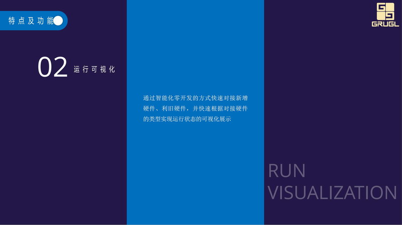 2、運行可視化:通過智能化零開發(fā)的方式快速對接新增硬件、利舊硬件,并快速根據(jù)對接硬件的類型實現(xiàn)運行狀態(tài)的可視化展示。