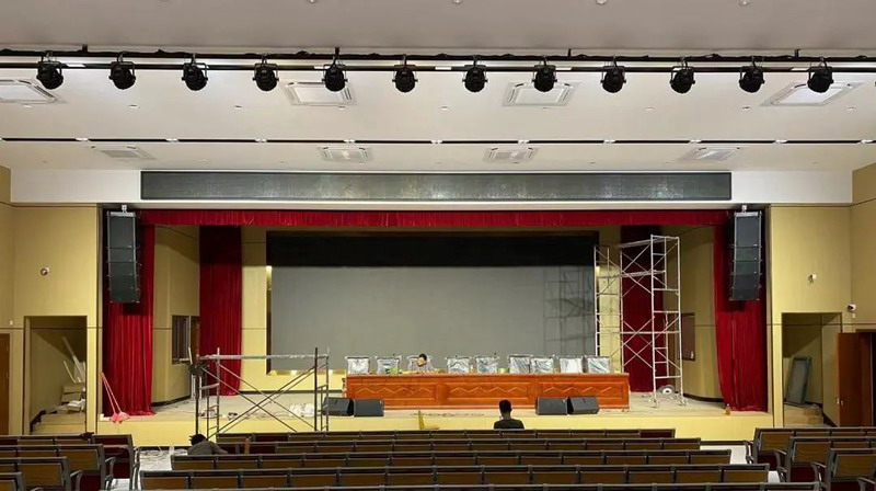 在舞臺臺唇位置設置了前區補聲揚聲器。舞臺前區補聲揚聲器共設2組,每組包含1只UM112,固定安裝于舞臺臺口位置,消除前區“死角”和聲像“壓頂”的感覺。