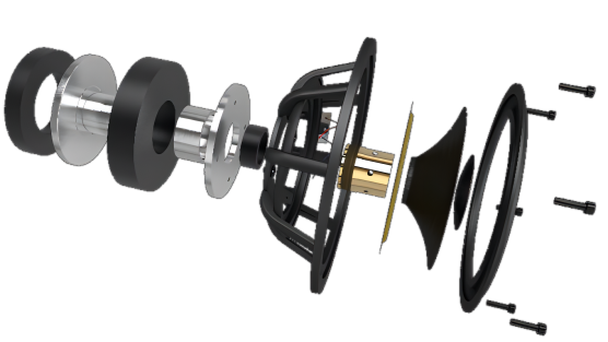 Windsor系列高音單元采用經(jīng)典的設(shè)計(jì),即外露式軟球頂高音,帶有壓力均衡的鐵氧體磁路系統(tǒng)和一個(gè)固定的金屬前面板。在高音單元中沒有使用附加鐵氧體,以保證高動(dòng)態(tài)范圍,這也使諧振頻率保持在800Hz以下,以獲得最佳性能。