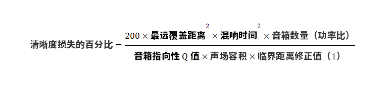 根據荷蘭聲學家V.M.A.Peutz(傳統臨界距離公式發明人)因為傳統臨界距離公式沒與清晰度指標掛鉤,所以在此基礎上加以完善,得出了聲場擴聲清晰度的設計公式。