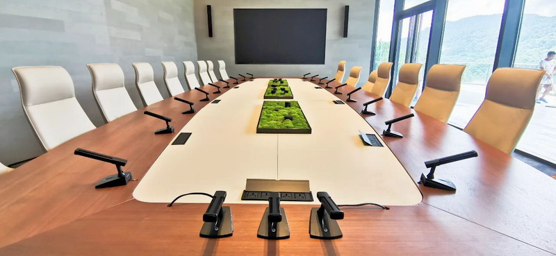 14 套 ATDM-1012 應用于會議中心,內置回聲抑制器及網(wǎng)頁操作界面,強力支持現(xiàn)場會議場景使用。