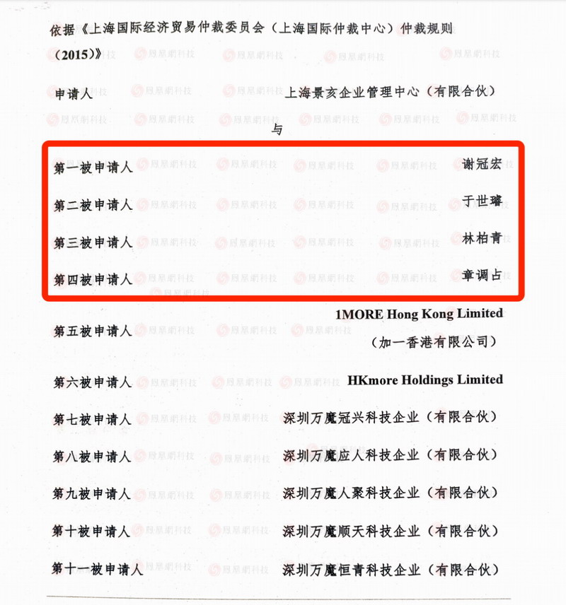 2023年2月14日,萬魔另一位創始人章調占在投資部的提醒下,拿到了一份仲裁文件。他發現,收到的上海國際仲裁委中心的仲裁文件中,自己被列為了第四位被申請人。