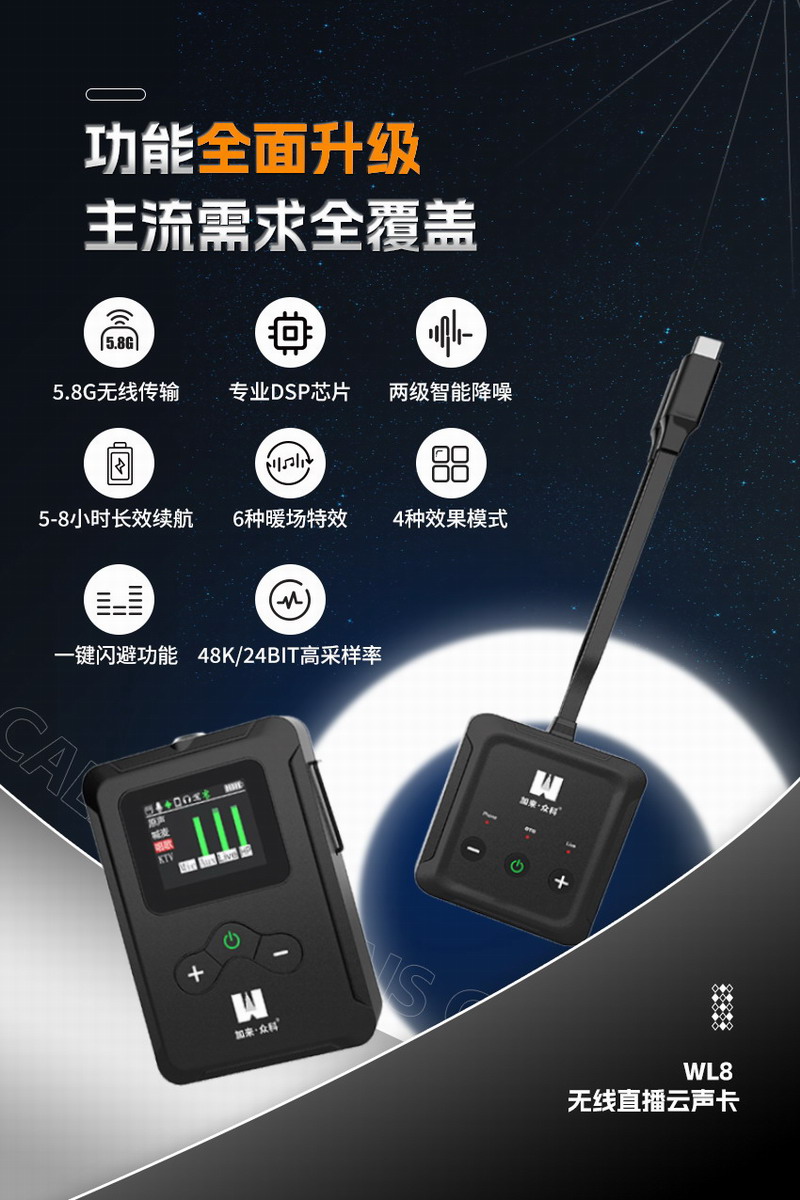 從聲音到功能,WL8無線直播云聲卡將全方位助力你的每一場精彩直播,無論你是專業主播還是直播新手,WL8都可以讓你的直播更高效、更專業、更輕松!