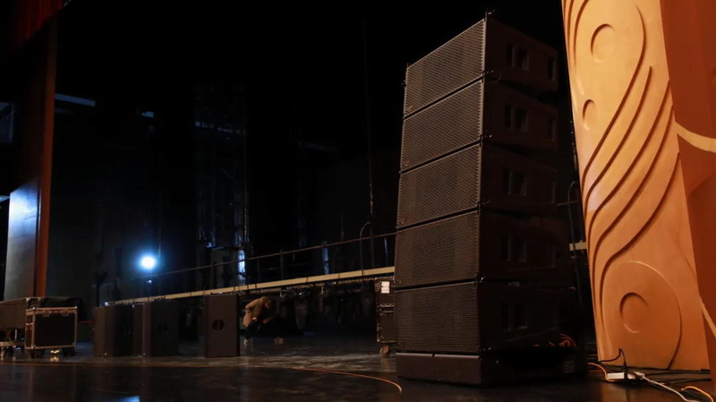 主擴揚聲器由Radius系列RSX212L雙12寸線陣列揚聲器構成,左右立體聲布局,每側五只堆疊在舞臺兩側,完美覆蓋劇場一層觀眾席。