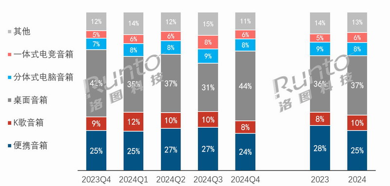 在過去的2024年,產品結構升級和場景多樣化的趨勢更加顯著。伴隨著各類高顏值、創新型的產品層出不窮,家居式桌面音箱、K歌音箱和一體式電競音箱等各細分賽道的成長,共同推動了整體市場的增長以及更進一步的增速。