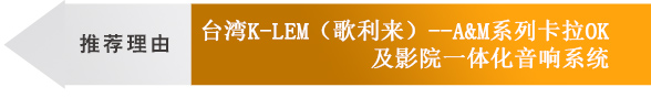 臺灣K-LEM(歌利來)經過三年的積累與整合,于2014年6月推出A&M系列卡拉OK及影院一體化音響系統,能同步實際卡拉OK歌唱+HIFI聽音+游戲電視娛樂+7.2影院系統功能,是一款跨界的新作,無論是功能、外觀、安裝都達到行內新的高度。 A&M系列卡拉OK+影院一體化音箱系統為臺灣K-LEM(歌利來)針對家庭、企事業單位多功能廳、會所俱樂部、量販式房間影院而開發的一款多功能音箱系統,能同時滿足卡拉OK歌唱、HIFI聽音、房間大動態DISCO舞曲、游戲電視娛樂、5.1或7.2的高清3D影院功能。 A&M系列音箱箱體外觀充分考慮使用場所的安裝要求,可隱藏式安裝、吊裝、書架支放等形式。箱體經多道打磨處理,外噴黑色鏡面效果亮光漆,配合前襯板可裝卸的棕色布網,一氣呵成,盡顯精細、大氣、高貴。 A&M系列音箱高音配合了一只上下左右可擴散號角,多節定向分段擴音,投射均等、寬廣。 |